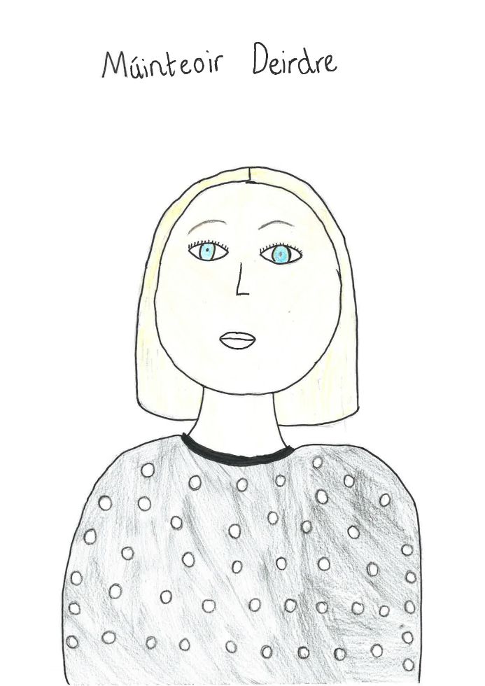 Múinteoir Deirdre teaches Rang 7 on a Monday and Tuesday. Múinteoir Deirdre is very kind and likes to teach us many new words and phrases in Gaeilge.